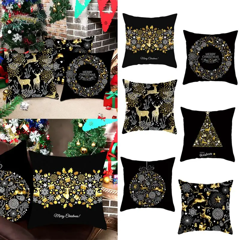 45cm Christmas Cushion Cover 2023 Merry Christmas Decorations for Home Christmas Ornament Navidad Xmas Gift Noel New Year 2024