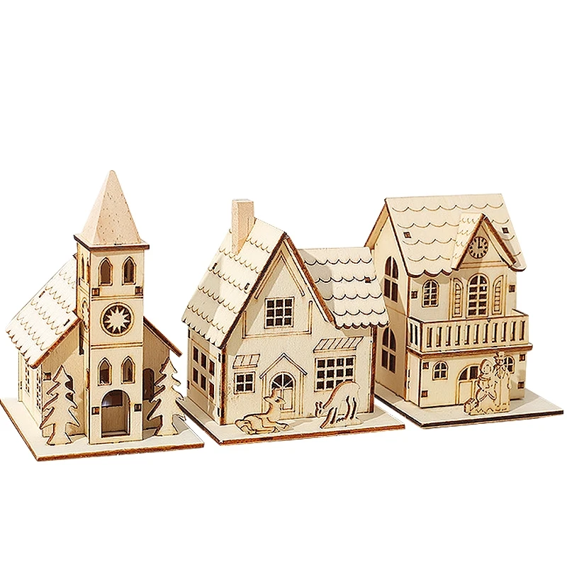 Christmas LED Light Wooden House Luminous Luxury bungalow Christmas Decorations Home Decor Fairy Night Lamp Pendant Kids Gift